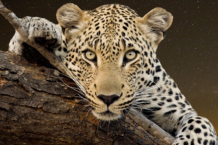 Mysterious and mesmerizing, Just Looking captures the silent power of the wild under a canopy of stars. In this striking image by wildlife photographer Paul Renner, a leopard gazes directly at the viewer, its piercing eyes illuminated against the backdrop of a glittering night sky. The scene blends strength and serenity — a moment of quiet intensity frozen in time. Printed on premium aluminum, the image shimmers with depth and clarity, creating a dramatic statement piece that embodies both the beauty and mystery of Africa’s nocturnal world.